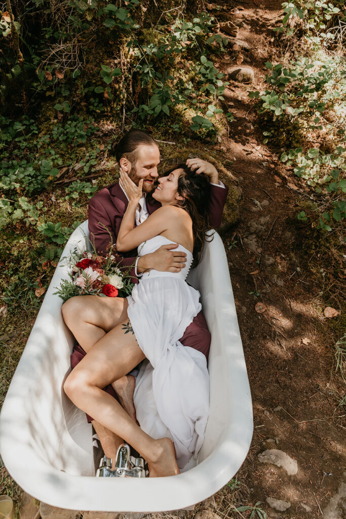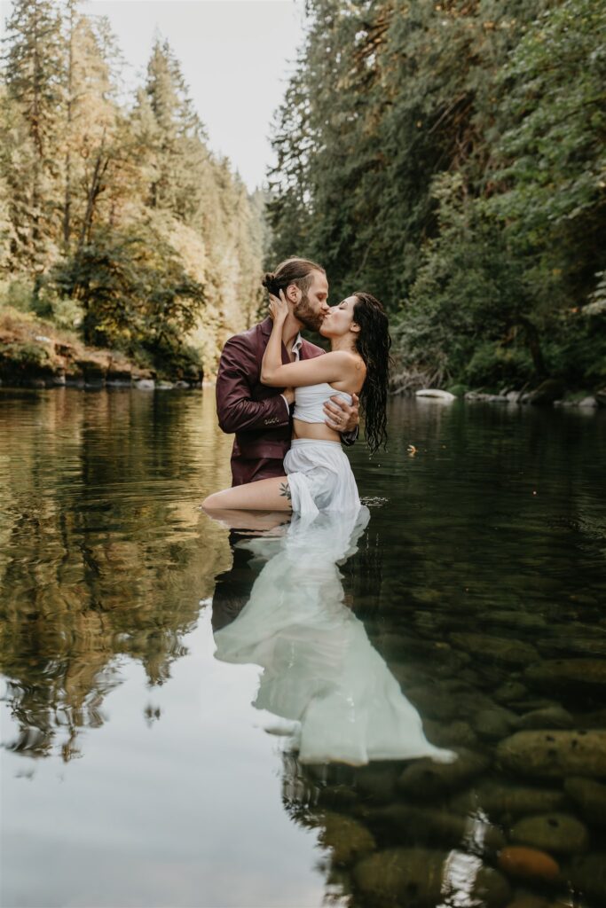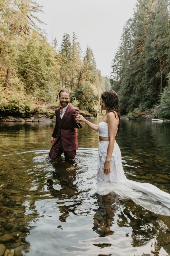 On Sunday morning, we slowed things down even more. A sauna session with friends, followed by a cold river plunge and a quiet photo session by the water. Bare skin, soft light, deep breaths. A reminder that wedding photos don’t have to end when the party does.